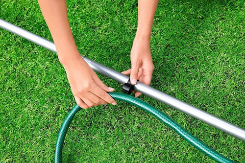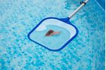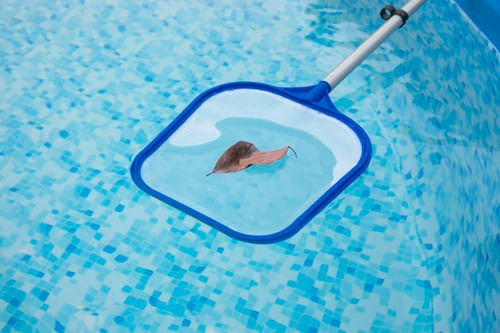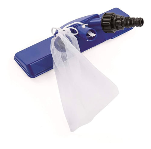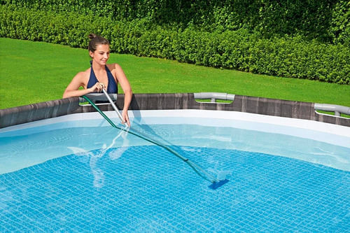 El kit de mantenimiento se conecta a una manguera de jardín e incluye una red para recoger la suciedad que pueda quedarse en la superficie de la piscina.