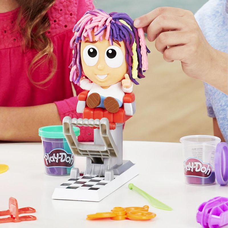 ¡En la peluquería de Play-Doh, se aceptan todos los estilos! Este salón de peluquería para niños a partir de 3 años les ofrece muchas maneras de jugar a ser peluqueros y hacerle al “cliente” los peinados más creativos que puedan imaginar.