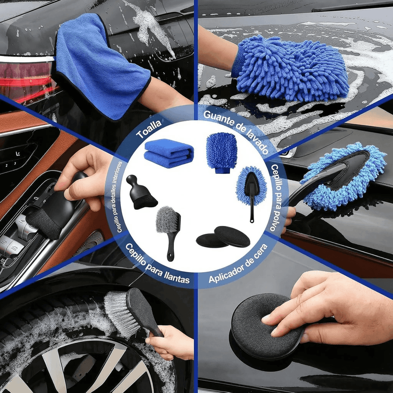 Accesorios de limpieza de alta calidad: El kit completo de limpieza para detalles de interiores de automóviles incluye materiales de alta calidad para detallar y limpiar interiores de automóviles como habitaciones, tableros, asientos, alfombras y más. Incluye: 1 Balde plegable 1 Rociador 2 Acomples rapido de manguera 2 Acoples para canilla 1 Guante de lavado 1 Cepillo para cubiertas 1 Dosificador 1 Pincel curvo (cerdas finas) 1 Backing plate 4" para taladro 2 Pad de pulido (cordero) 1 Pad de pulido intermedio 1 Pad de pulido finish 4 Cepillos para taladro 2 Pad aplicadores 2 Paño de microfibra 5 Pinceles 3 Cepillos 2 Pad aplicadores 1 Cepillo corto (cerdas intermedias) 1 Limpiador de vidrio (con 3 repuestos) 1 Cepillo corto para detallado 1 Super clean slime 1 Cepillo de microfibra