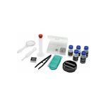 Incluye: 3 laminas preparadas, 8 laminas en blanco, 8 cubreobjetos de vidrio en blanco, 8 etiquetas, 8 cubreobjetos de plástico en blanco. 3 viales para muestra, 1 caja de Petri, pipeta, varilla agitadora, bisturí, espátula, pinzas, tubo y adaptador para smartphone.