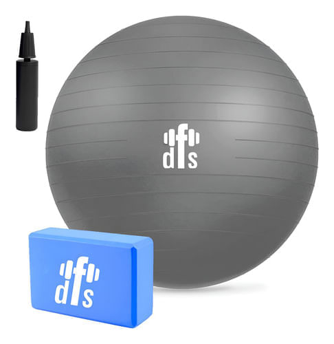 Kit Pilates Pelota Esferodinamia 55 Cm + Ladrillo Dfs Yoga Azul