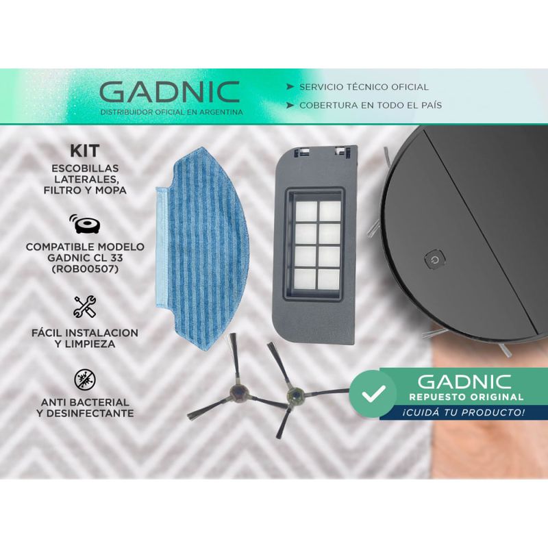 Kit Repuestos de Aspiradora Robot Gadnic ROB00507 Mopa Cepillo Filtro