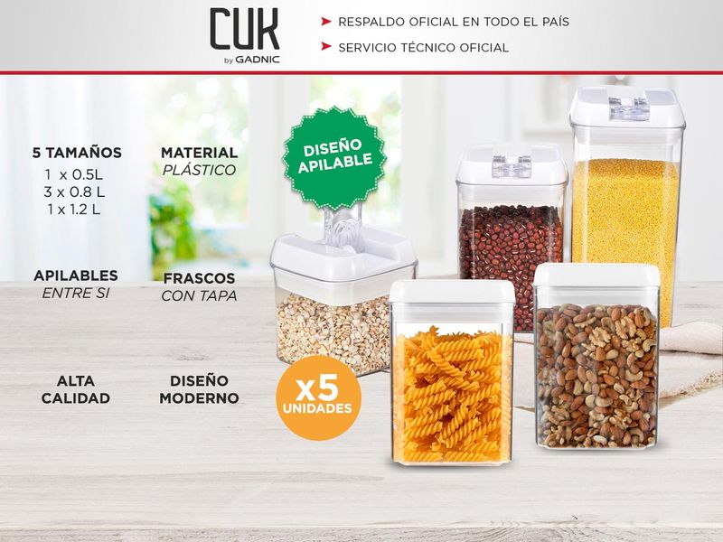 Los recipientes transparentes de Gadnic te permiten identificar fácilmente su contenido, gracias a su diseño claro y práctico. Fabricados con material libre de BPA de alta calidad, garantizan durabilidad y resistencia en su uso diario.