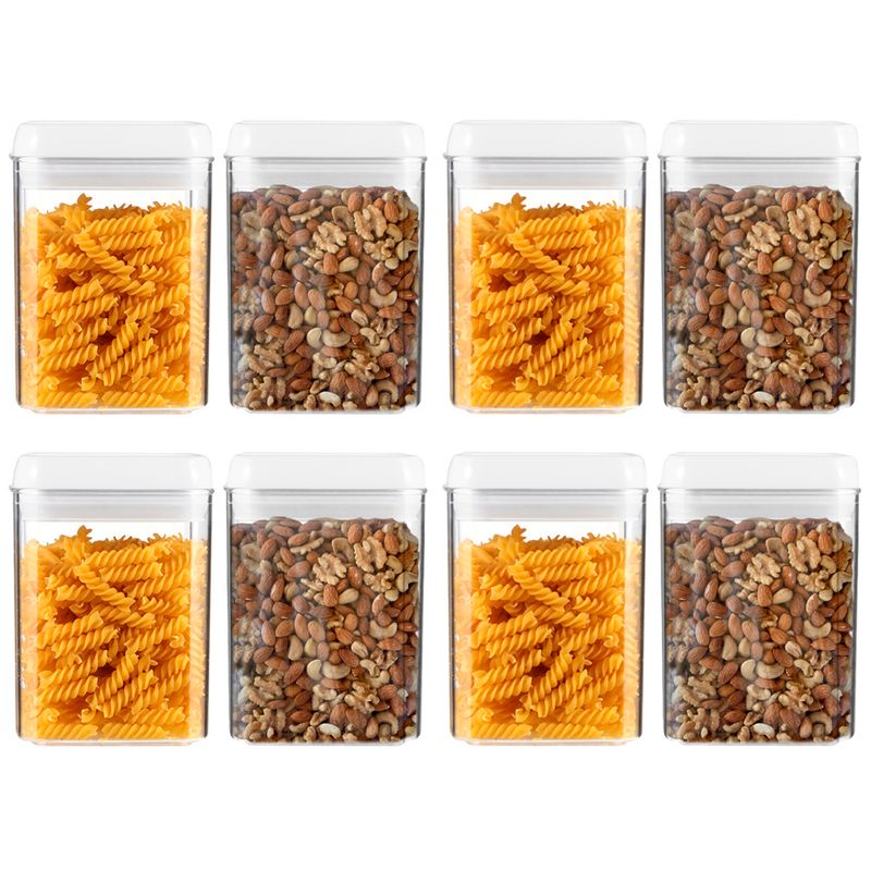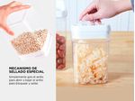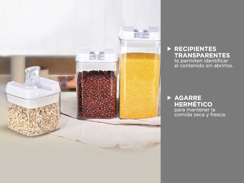 Los recipientes transparentes te permiten identificar el contenido. Hecho de material libre de BPA de alta calidad, nuestros recipientes herméticos son duraderos. El plástico de estos recipientes es muy claro, puede identificar el contenido sin abrirlos. Agarre hermético para mantener la comida seca y fresca. Con mecanismo de sellado especial, puedes abrir o cerrar nuestros recipientes de plástico de forma segura utilizando solo dos dedos. Simplemente gira el anillo para abrir o bajar el anillo para bloquear y sellar.