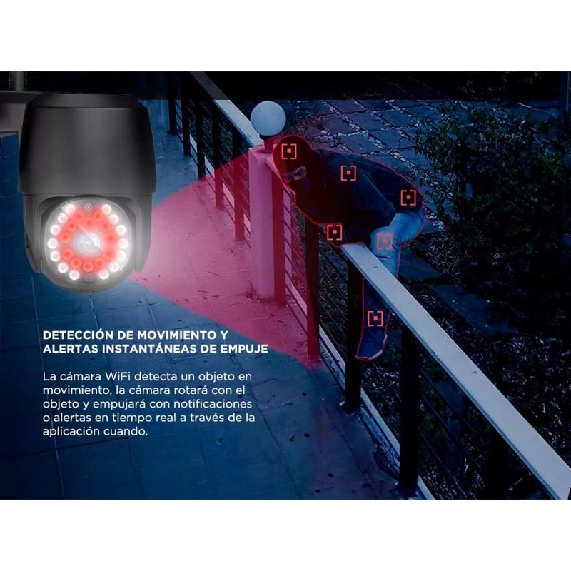 La visión infrarroja se activa automáticamente en condiciones de poca luz, asegurando una vigilancia continua durante la noche. Y si deseas un estilo uniforme, su elegante diseño en un único color se adapta perfectamente a cualquier entorno.