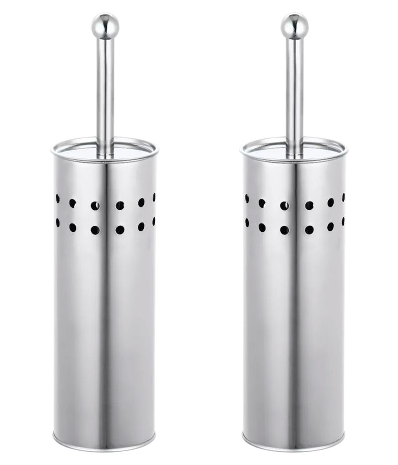 HogarDecoAccesoriosKit X2 Escobilla Cepillo Baño Limpia Inodoro Con Tapa Acero