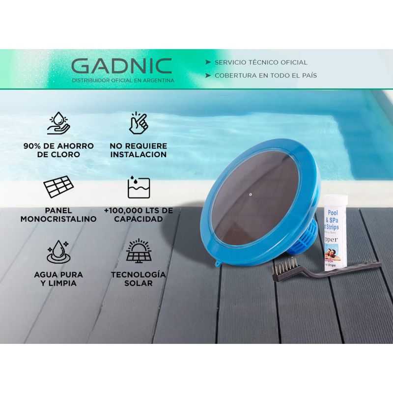 El Ionizador Solar Gadnic es la solución ideal para mantener tu piscina cristalina de manera eficiente y ecológica. Este innovador dispositivo utiliza energía solar para inhibir el crecimiento de algas y reducir el uso de productos químicos, brindando un agua más saludable para todos.