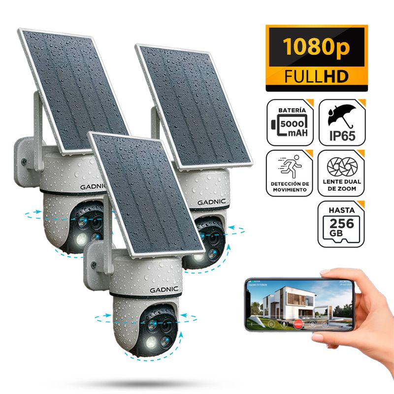 El panel solar incluido mantiene la cámara cargada todo el día, sin depender de enchufes ni instalaciones eléctricas.