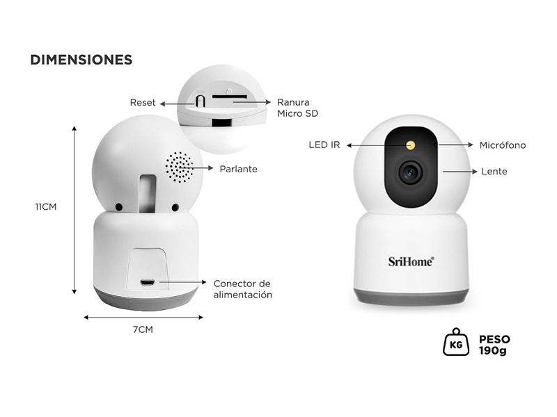 Cámara de Seguridad IP SriHome 4MP Wifi 5g 2.4g - P2PSRI03