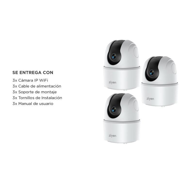Kit x3 Cámaras De Seguridad Interior Ziyen Wifi Vision Nocturna 2mp