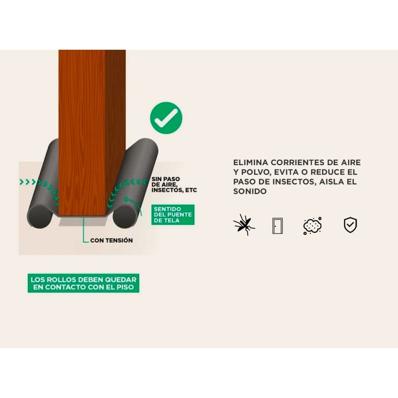Ideal para mantener tu puerta aislada de ruidos, insectos, agua, polvo y ademas se puede cortar a la medida que necesites y instalarlo en tan solo 5 minutos