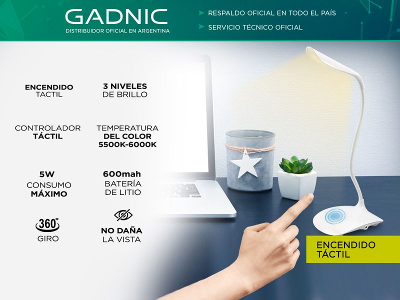Lampara De Escritorio Led Gadnic DSK1000 Regulable Flexible Control Tactil - DESKL001