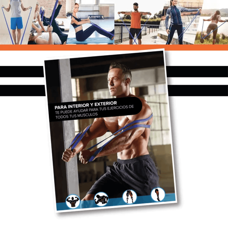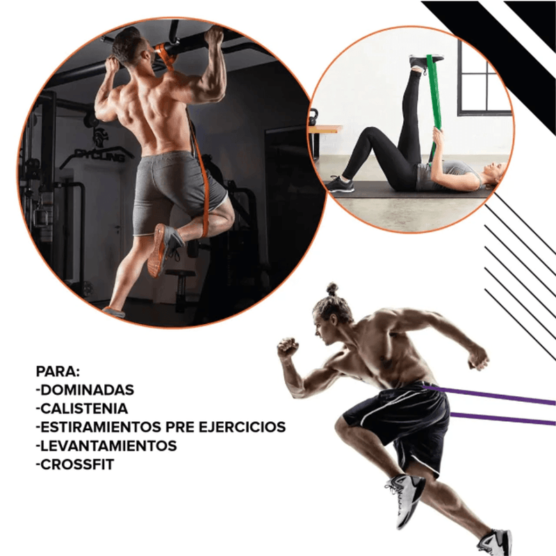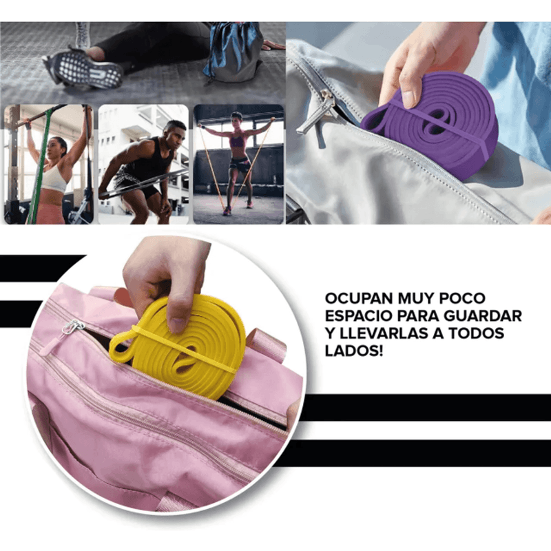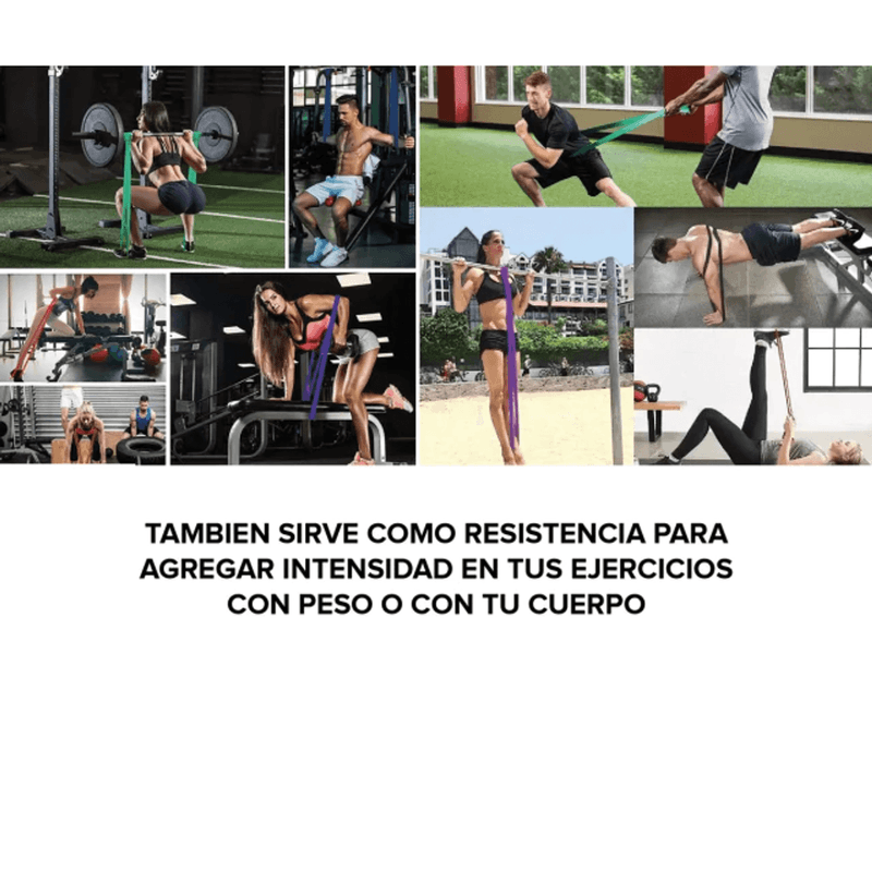 Fabricadas en caucho termoplástico (TPE) de alta durabilidad, ofrecen un estiramiento seguro, uniforme y antideslizante, sin deformarse ni romperse. Su formato cerrado tipo “loop” permite una gran variedad de ejercicios tanto para tren superior como inferior.