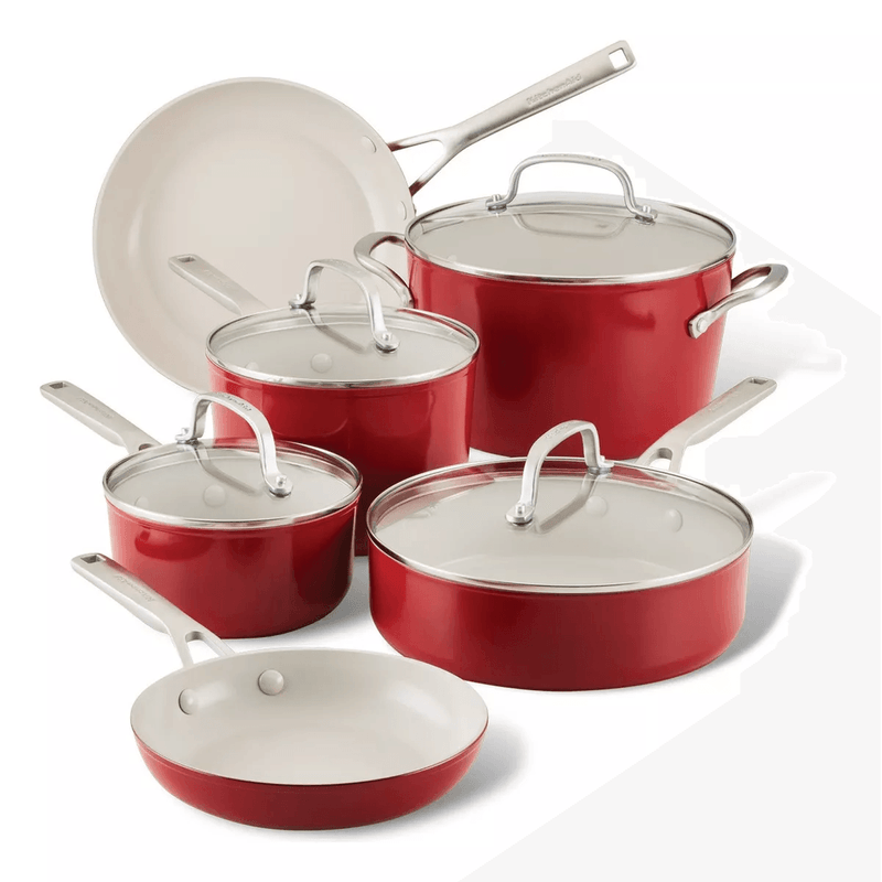 La Batería de Cocina KitchenAid Batería de cocina Antiadherente Cerámico Anodizado Duro de 10 Piezas, Verde Pistachio incluye :