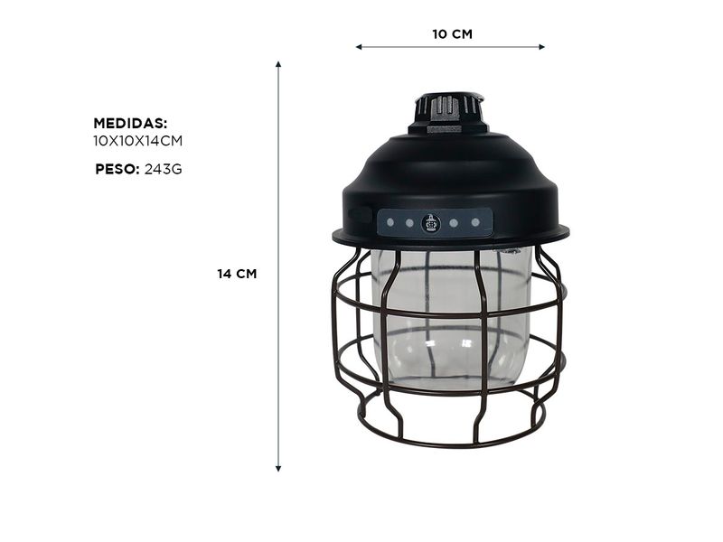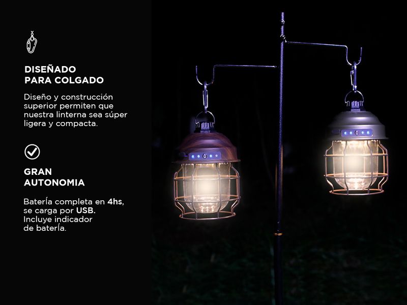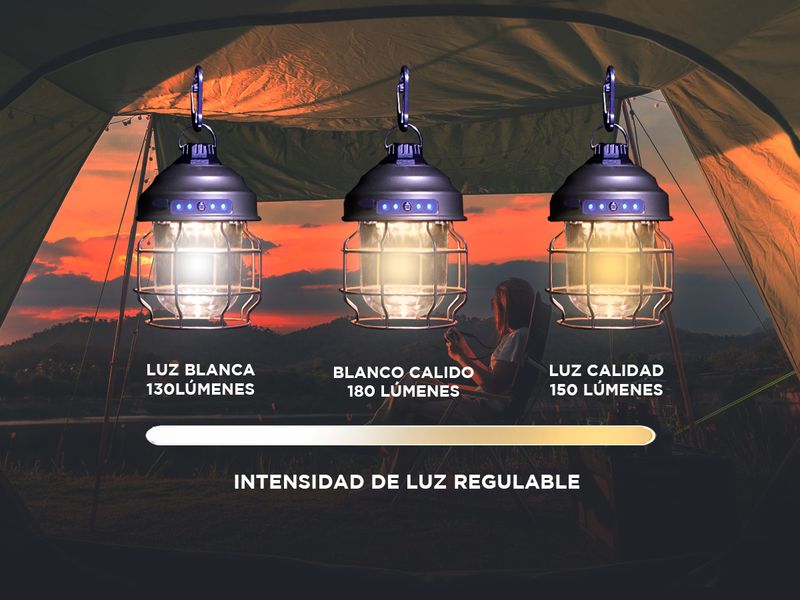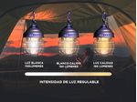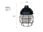 La carcasa y la pantalla de la lámpara de camping están hechas de hierro. El proceso especial de pintura lo hace durable. Además es resistente al polvo y agua en un rango de IPX4