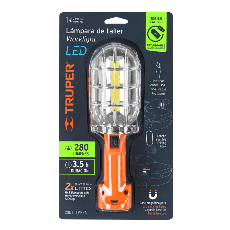 Lámpara LED 280 lm de taller, recargable, Truper