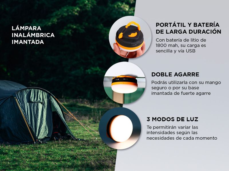 Nueva lampara de camping con base imantada y agarre ergonómico