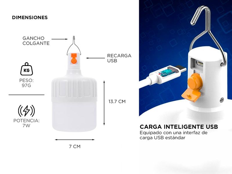 Descubre la mejor compañera para tus aventuras al aire libre, la Luz Colgante Recargable Gadnic. Presentamos una solución innovadora que iluminará tus noches al aire libre con comodidad y versatilidad. Diseñada especialmente para campamentos y actividades al aire libre, esta luz colgante recargable se convertirá en tu aliada confiable en cada escapada.