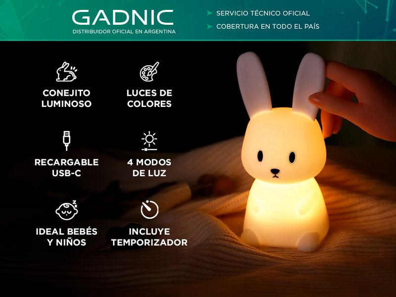 La Lámpara Nocturna de Conejito de Gadnic no solo es una fuente de luz, sino también una compañía amigable para los niños. Es un regalo perfecto que combina seguridad, diversión y estilo en un solo producto. Dale a tus hijos la compañía suave y reconfortante que merecen con Gadnic.