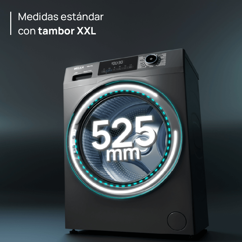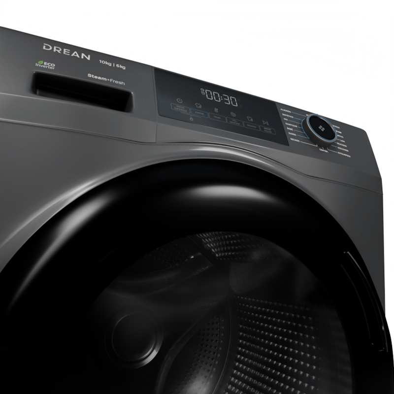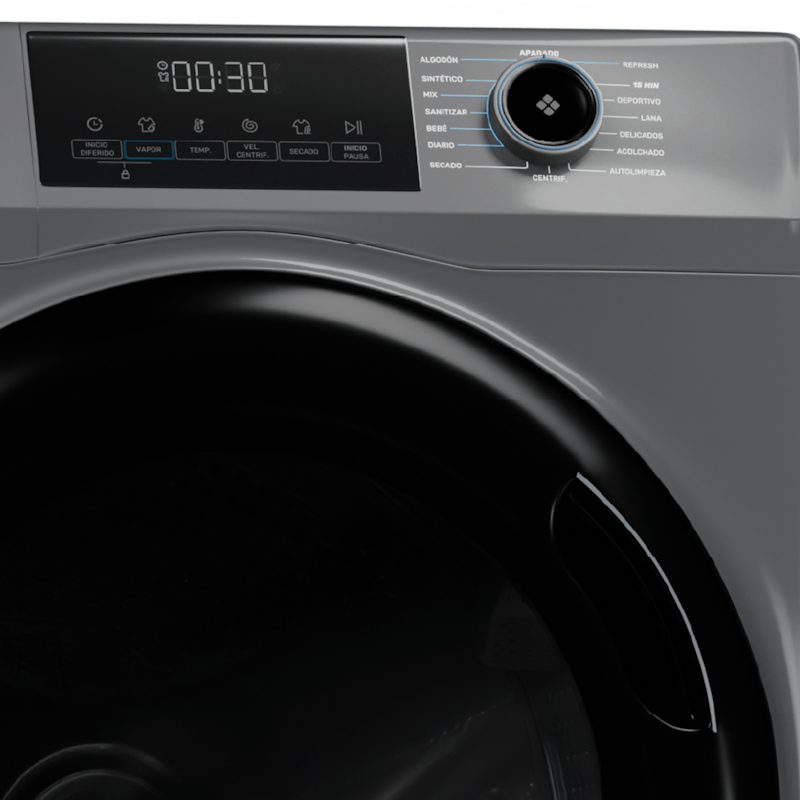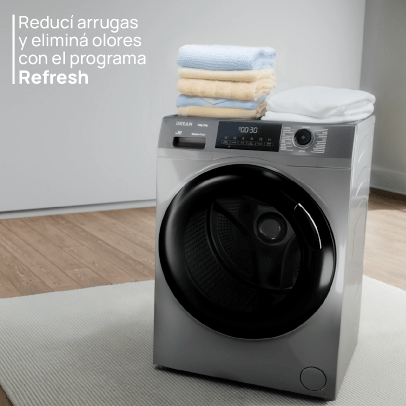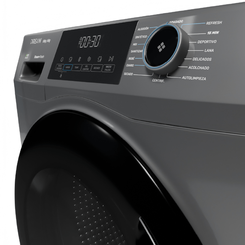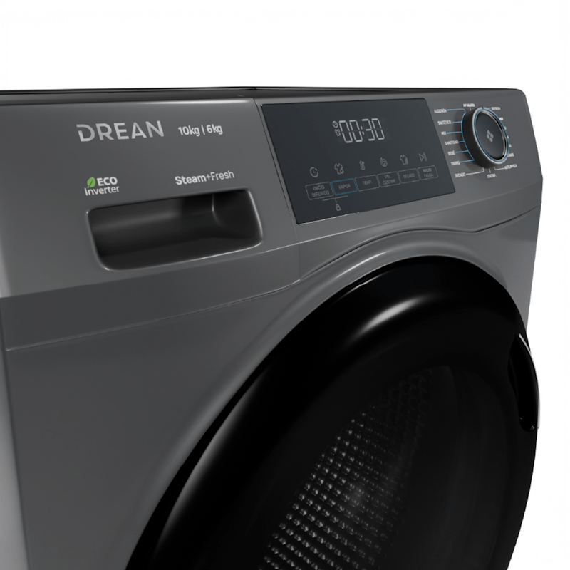 Tipo: Lava Secarropas por calor de carga frontal Capacidad de Lavado: 10kg Capacidad de secado: 6kg Revoluciones de Centrifugado: 1400RPM Tecnologías: Ultimate Drying, Energy Saver Green, Antiarrugas Modos de secado: Aire fresco (30 y 60 min), calor (30, 60, 120, 180 min), y programa Auto con detección de humedad Display: LED con perilla y protección conformal coating Tambor: Acero inoxidable con geometría soft para mayor cuidado de las prendas Sistema de instalación: Dual, con opción de salida de aire al exterior Funciones adicionales: Antiarrugas automática, eliminación de bacterias y ácaros, secado rápido en 30 minutos Filtro: Atrapa pelusa, de fácil acceso y limpieza Dimensiones: 83 x 60 x 58,5 cm (alto x ancho x profundidad) Peso: 30 kg Modelo: SED090VGCL0 Color: Gris