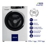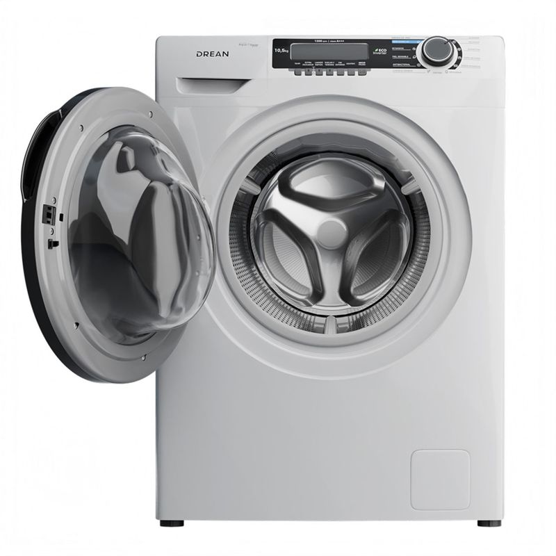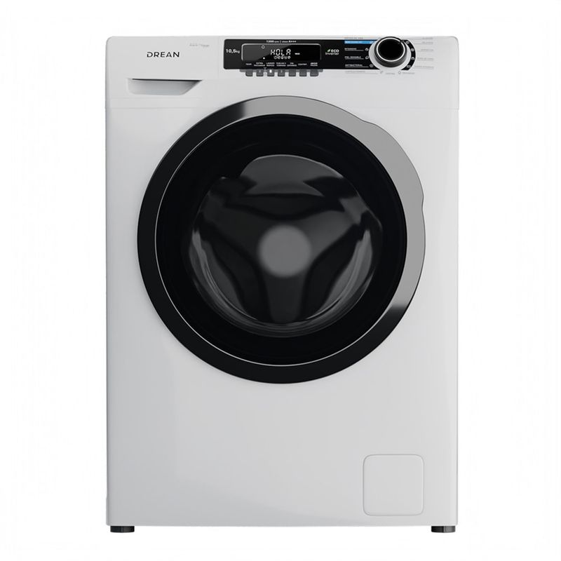 Lavarropas de carga frontal con tecnología Ecoinverter. Su capacidad de lavado es de 10,5 Kg y su velocidad de centrifugado regulable hasta 1200 RPM. Color blanco. Eficiencia energética A+++. Lavado europeo. 13 programas de lavado. Display LED y perilla retroiluminada. Carga autoadaptativa y función autobalance. Tambor de acero inoxidable con luz. Cúpula de vidrio. Sus programas incluyen lavado rápido 30’, ECO, hipoalergénico. Opción vuelvo y termino, inicio diferido y extra enjuague.