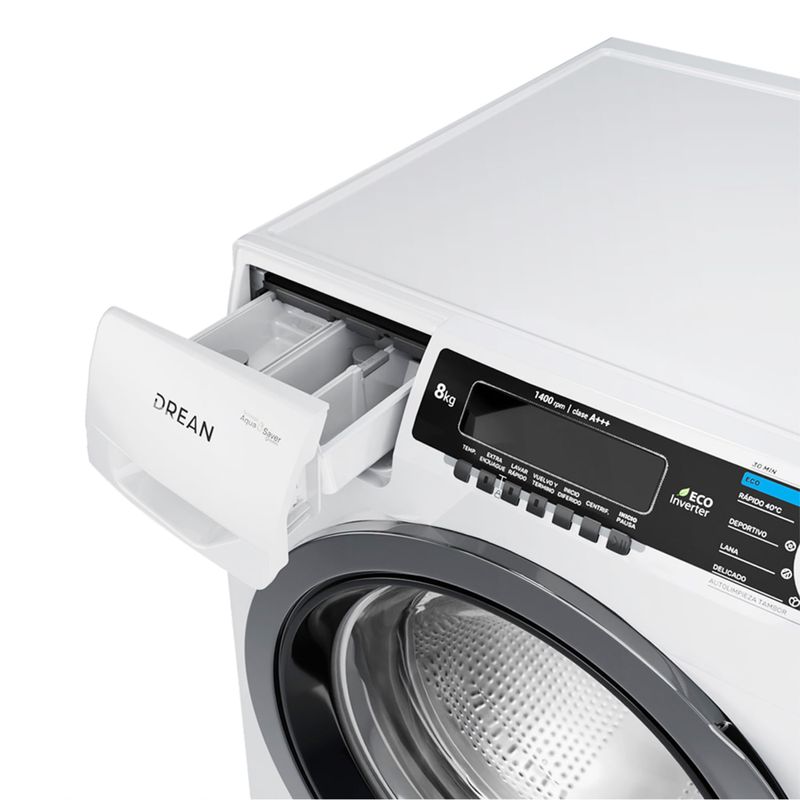 Lavarropas de carga frontal con tecnología Ecoinverter. Su capacidad de lavado es de 8 Kg y su velocidad de centrifugado es regulable hasta 1400 RPM. Color blanco. Eficiencia A+++. Lavado europeo. 15 programas de lavado. Display LED y perilla. Carga autoadaptativa, función autobalance y bloqueo de puerta. Incluye inicio diferido y extra enjuague. Tambor de acero inoxidable. Cúpula de vidrio. Sus programas incluyen lavado rápido 30’, ECO, hipoalergénico. Opción vuelvo y termino. Origen Argentina.