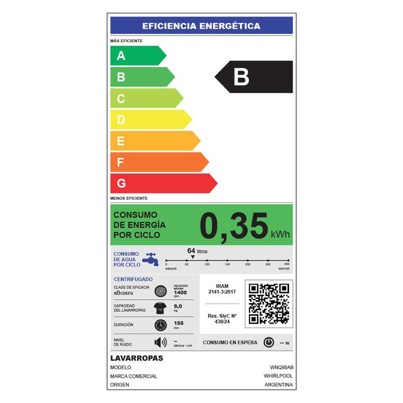 Dimensiones del producto 84,6 x 59,5 x 64,4 cm Dimensiones con embalaje 87,7 x 67,6 x 69,8 cm Capacidad bruta 64 L / 9 KG Color Blanco Tipo (abertura de puerta) Frontal Puerta Vidrio/Plástico Ciclos (listar) "15 Ciclos: Rápido 45' Quita Manchas PRO Refrescar con Vapor Lana Edredón Eco EEE Enjuagar y Centrifugar Centrifugar Diario Color Blanca Rápido 15' Delicada Sanitizar Sábanas y toallas" Filtro (sí/no) Si Sexto Sentido Si Origen Argentina Sistema de lavado Frontal Revoluciones por minuto 1400 RPM Peso 79,7 KG Pies Niveladores Si Ruedas No Display Si Control de temperatura Si Alarma de puerta Si Traba de seguridad Si Función Antiarrugas Si Tambor Acero inoxidable Garantía 12 meses + 10 años garantía especial limitada en el motor Tipo de adaptador Argentino Tipo de cable Estándard con enchufe Nivel de ruido N/A Consumo de agua 64 L Media carga Incluye sensado de carga Eficacia de Lavado A Eficacia del Centrifugado B Eficiencia Energética / Clase Climática A++ Bomba de desagote Sí Lavado a Mano Incluye ciclo de lavado delicado Exclusión de Centrifugado Si Agua fría / caliente Incluye calentador interno