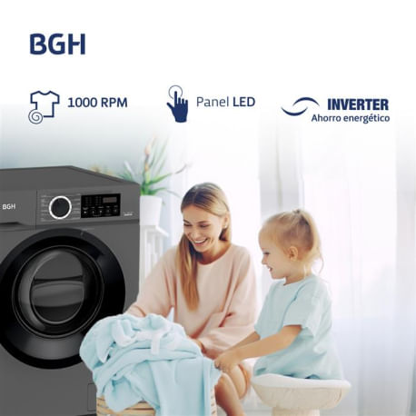 El lavarropas BGH BWFE06S24AR.INV.6K de carga frontal combina eficiencia energética y diseño compacto. Con capacidad para 6 kg y velocidad de centrifugado de 1000 rpm, es ideal para hogares modernos. Su tecnología Inverter garantiza un funcionamiento silencioso y ahorro de energía. Además, ofrece múltiples programas de lavado adaptados a diferentes tipos de prendas.