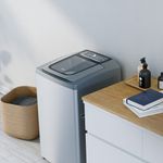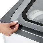 Lavarropas de carga superior. Su capacidad de lavado es de 6,5 Kg y su velocidad de centrifugado es de 800 RPM. Color gris. Eficiencia A+. Sistema oriental. Cuenta con Display LED digital y botones. Su tapa es de vidrio templado y su tambor de acero inoxidable. Posee alarma fin de lavado, selector de temperatura y de agitación. Su programa Fuzzy detecta el mejor programa de lavado según la carga de ropa y agua necesaria. Opción media carga y plancha fácil. Entrada de agua fría y caliente.