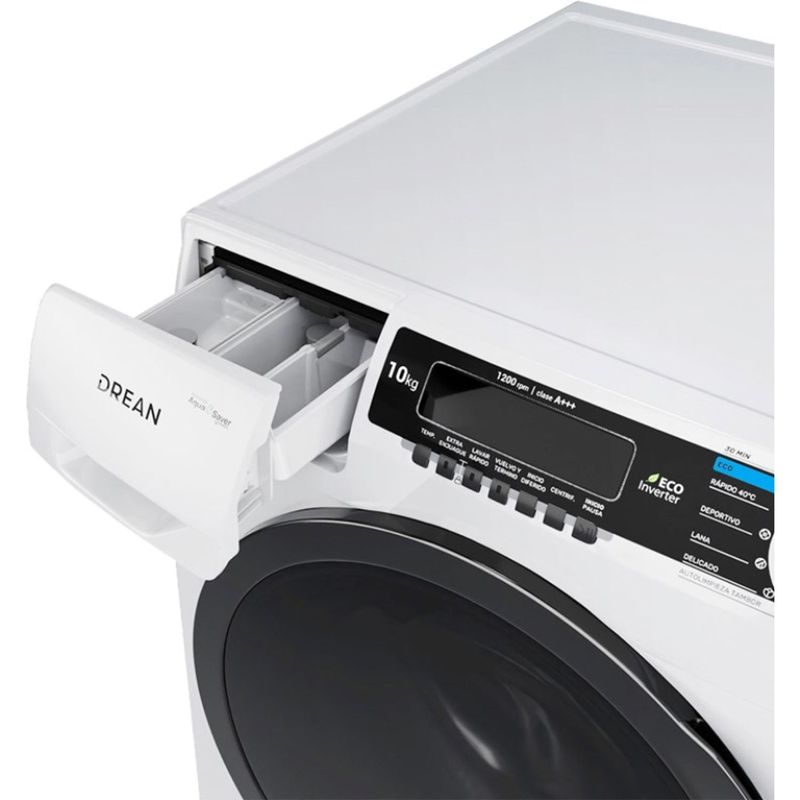 LAV AUT LFDR1012TG0 10KG INV BL DREAN - Capacidad máxima de lavado (kg) 10 - Velocidad máxima de centrifugado (RPM) 1200 - Motor INVERTER - Cúpula Vidrio - Aro Adorno Puerta AU - Color Aro Adorno Puerta Gris Oscuro/Domo - Diámetro apertura de puerta 337 mm - ¦ngulo de apertura de puerta 180° - Domo SI - Luz Tambor SI - Tipo de bloca porta Híbrido - Voltaje AC 220-240V - Frecuencia nominal 50Hz - Potencia nominal de la resistencia decalentamiento de agua (W) 1600W - Consumo de agua (L/Ciclo)* 70 - Consumo de Energía (kWh/Ciclo)* 0,35 - Consumo de Agua (L/Anual)* 14000 - Consumo de Energía (kWh/Anual)* 70 - Clase de eficiencia energética* A+++ - Eficacia de centrifugado* A - Clase de eficacia de lavado* A - +ndice de eficacia de lavado* 1,03 - Clase a prueba de agua IPX4 - Certificado EE DC-E-J2-136.1 - Controles Táctil - Ciclos automáticos 15 - Algodón - Sintético - Bebé - Algodón EEE - Enjuague - Cetrifugado - Lana - Deportivo - ECO - Express / Lavado rápido - Display Azul - IRAM 2141 EE - IRAM 2092 Seguridad -Dimensión Ancho 595 -Dimensión Profundo 550 -Dimensión Alto 855 -Peso (kg) 72 -Dimensiones del empaque -Dimensión Ancho 640 -Dimensión Profundo 565 -Dimensión Alto 890 -Peso con embalaje (kg) 73 - Modelo LFDR1012SB - Garantía por 12 meses - Origen CHINA