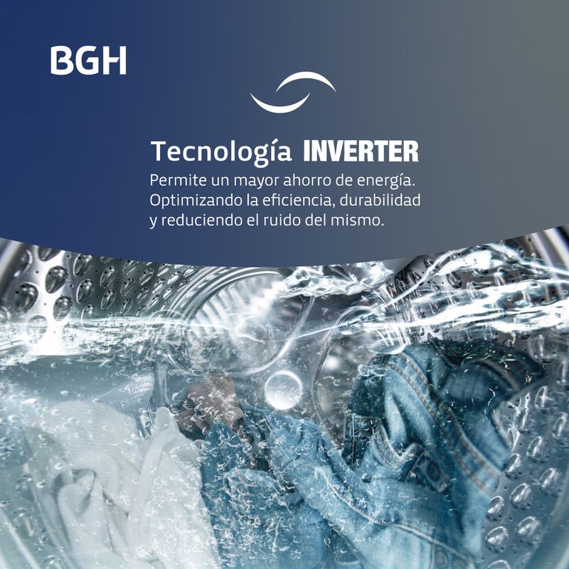 Este lavarropas cuenta con tecnología Inverter, que optimiza la eficiencia energética y reduce el ruido, proporcionando mayor durabilidad y ahorro en comparación con un lavarropas tradicional.