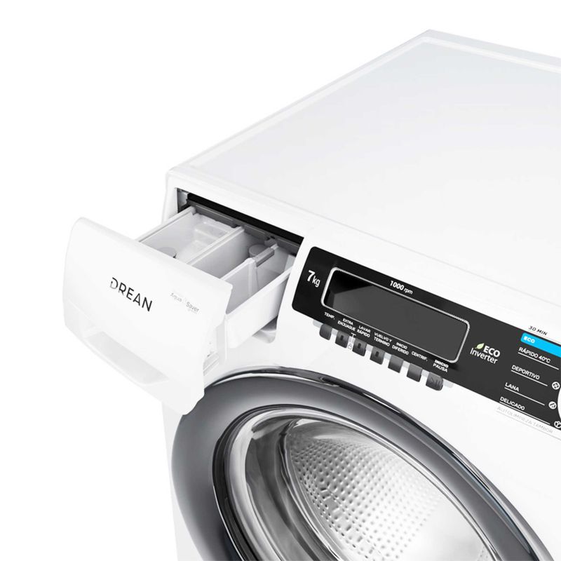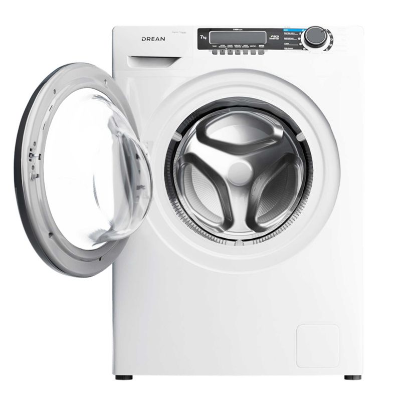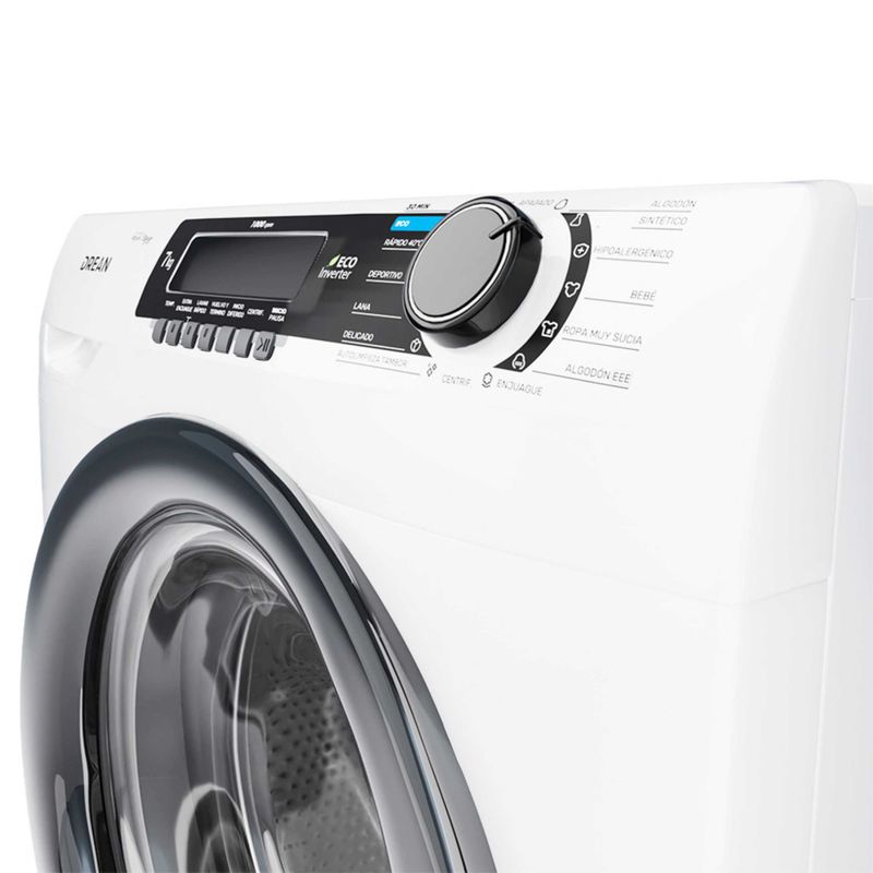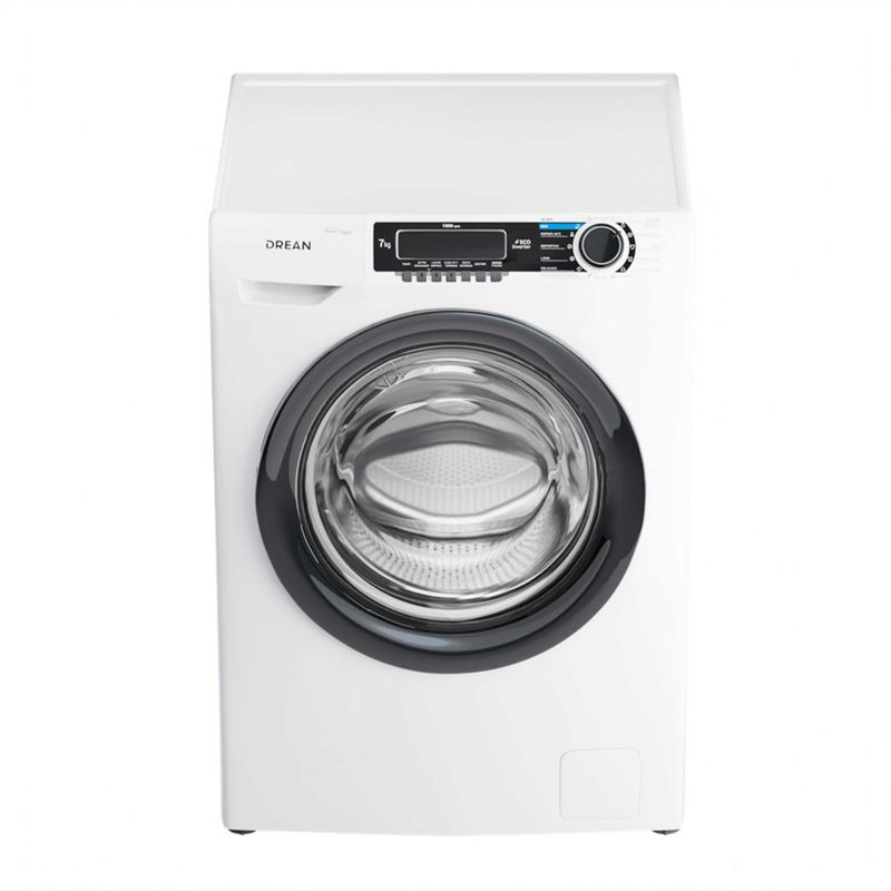 Lavarropas automático de carga frontal. Tecnología Ecoinverter. Capacidad de 7 Kg. Color blanco. Hasta 1000 RPM. Eficiencia A++. Sistema de lavado europeo. 15 programas. Display LED y perilla retroiluminada. Bloqueo para niños. Sistema Autobalance. Carga autoadaptativa. Lavado rápido 30’.