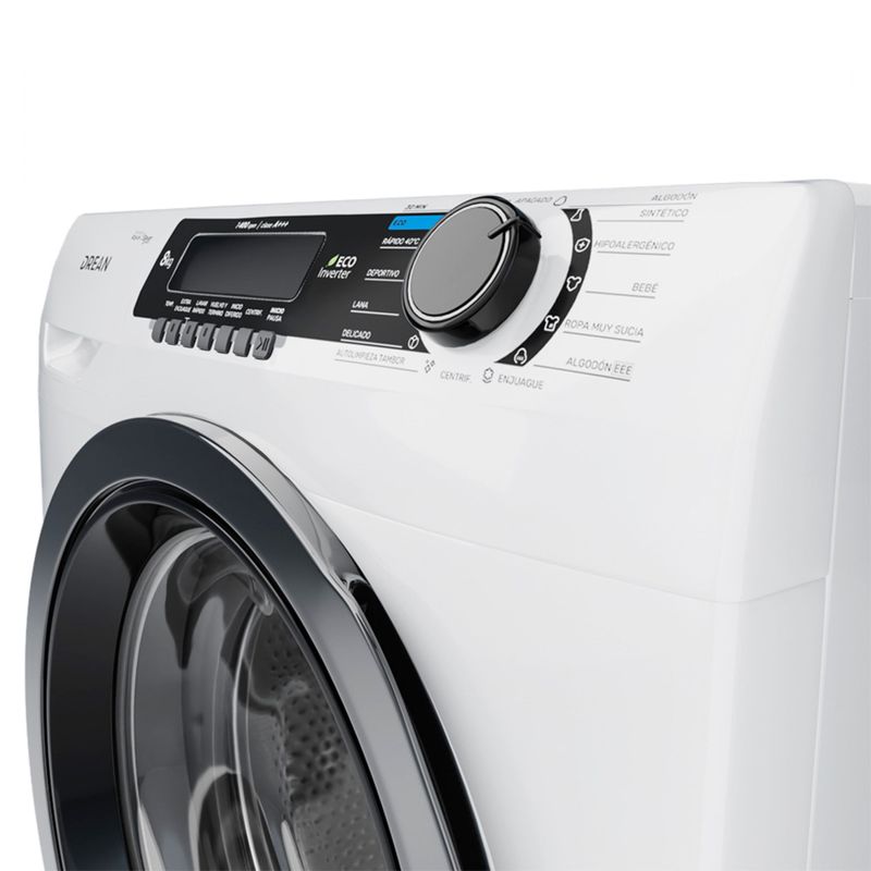 Lavarropas automático de carga frontal. Tecnología Ecoinverter. Capacidad de 8 Kg. Color blanco. Hasta 1400 RPM. Eficiencia A+++. Sistema de lavado europeo. 15 programas. Display LED con perilla retroiluminada. Bloqueo para niños. Sistema Autobalance. Carga autoadaptativa. Lavado rápido 30’.