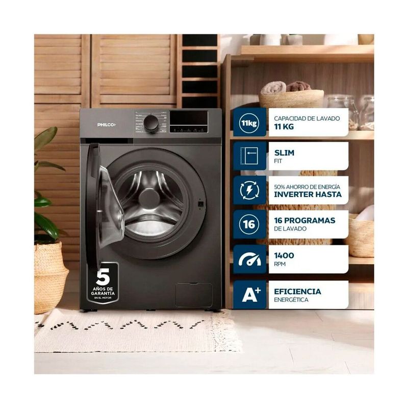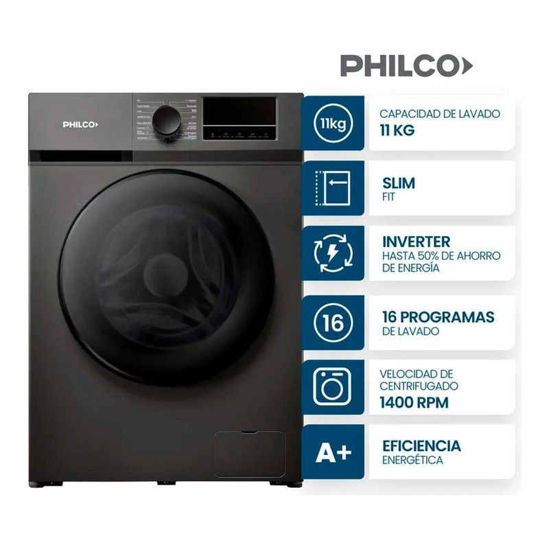 El Lavarropas Automático Philco Inverter PHLFA11C3AGN está diseñado para quienes buscan potencia, eficiencia y comodidad en su hogar. Con una capacidad de 11 kg, este modelo permite lavar grandes volúmenes de ropa en menos tiempo, siendo ideal para familias o quienes prefieren lavar menos veces por semana.