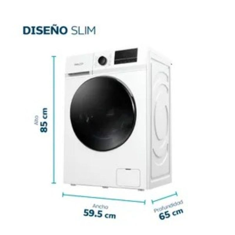 Con medidas de 85 x 59.5 x 65 cm (Alto x Ancho x Profundidad) y un peso de 74 kg, se integra fácilmente a cualquier espacio de lavado. Elegí tecnología, eficiencia y comodidad para tu hogar con este lavarropas pensado para acompañarte todos los días.