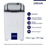 » Tecnología: Lo último en tecnología, lo mejor en lavado. La tecnología Ultimate Washing, es un sistema de soluciones tecnológicas de última generación que permiten alcanzar los mejores estándares de lavado, con el mínimo consumo de agua y ahorro de energía.Gracias a su tecnología Aqua Saver Green y Energy Saver Green, obtené los mejores resultados de lavado, con el mínimo consumo de agua y energía eléctrica. Testeados para maximizar su vida útil, te aseguran el mejor rendimiento y durabilidad, con el respaldo y garantía de Drean.