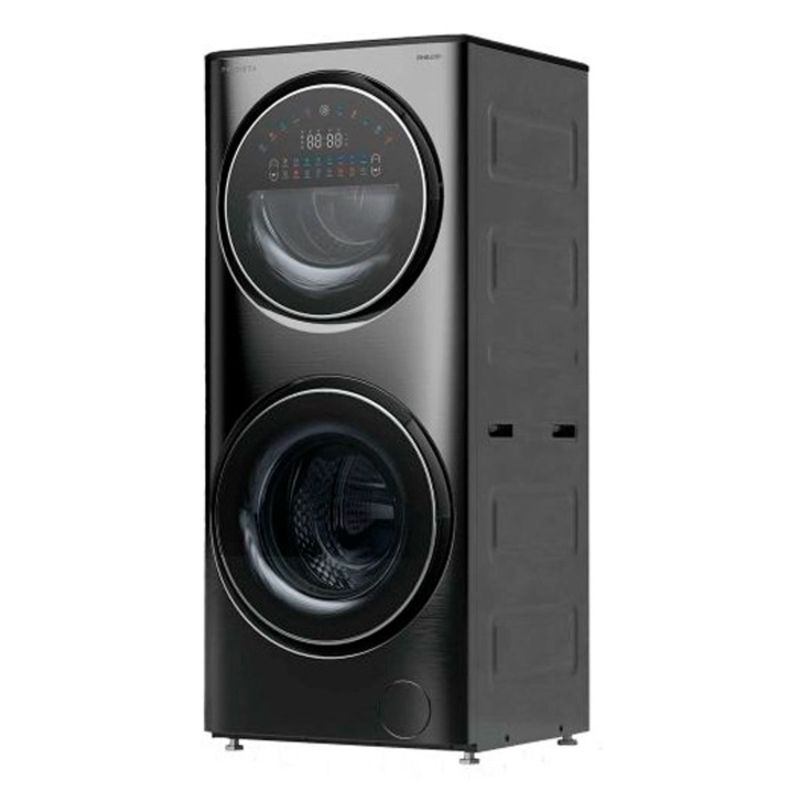 Sumergite en un mundo de comodidad y tecnología con la Torre de Lavado Philco. Este innovador electrodoméstico cuenta con un lavarropas en la parte superior y un lavasecarropas en la parte inferior, ambos frontales y con un elegante acabado en acero inoxidable negro. La combinación perfecta de eficiencia y estilo hará de tus días de lavado una experiencia rápida y simple.