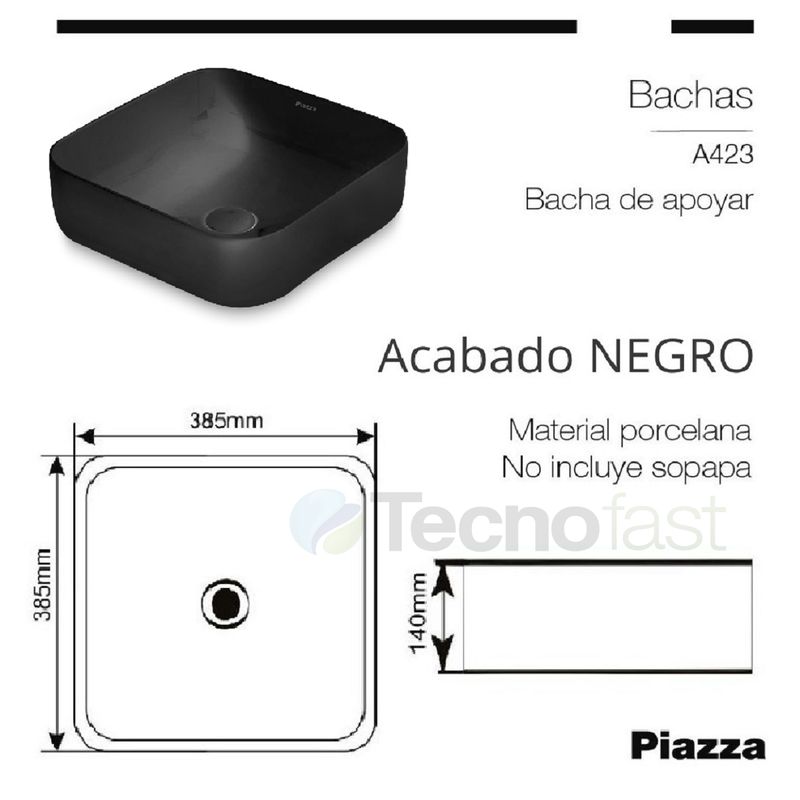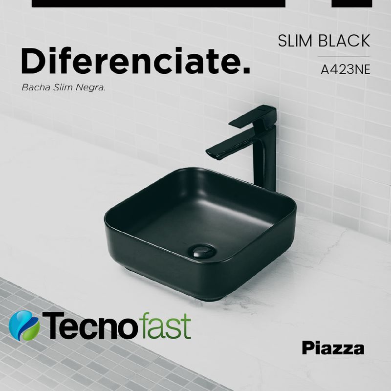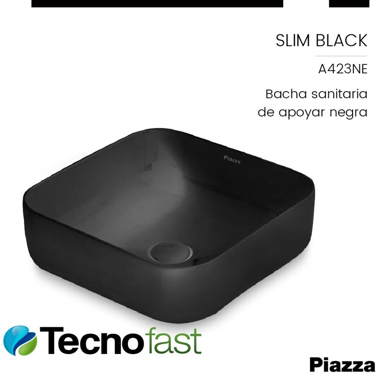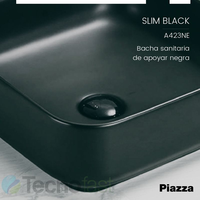 Bacha Piazza A423 Slim Cuadrada Lavatorio Fino de Apoyo Negro