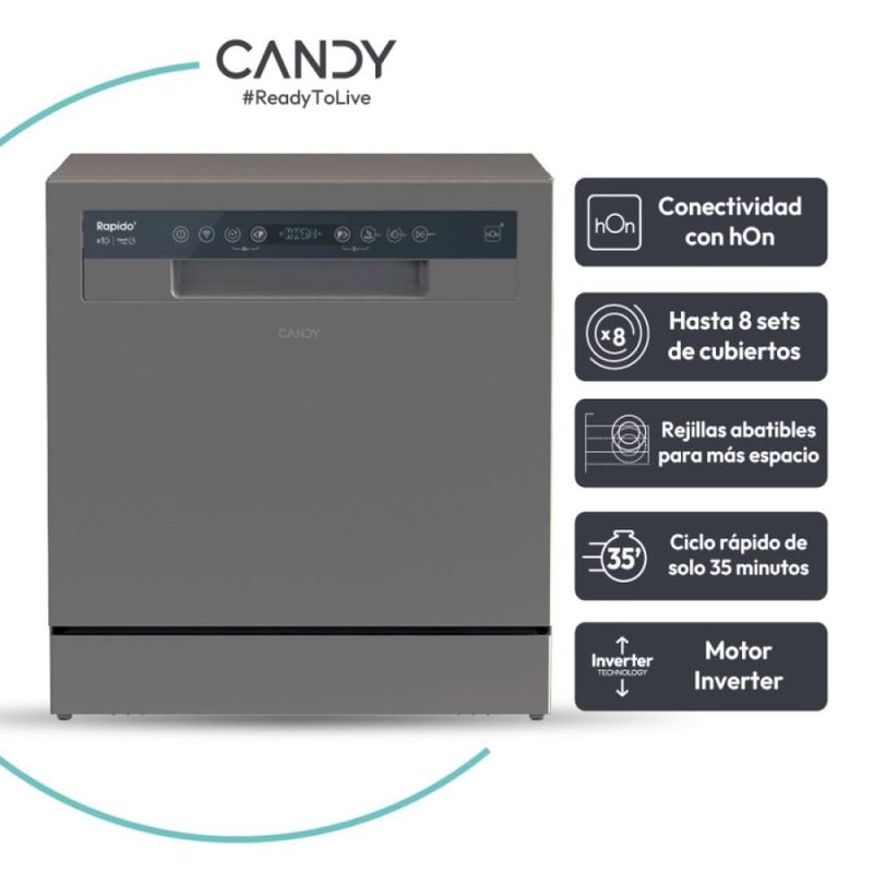 LAVAVAJILLAS INVERTER CP8F9FFA-12 8 CUBIERTOS GRAFITO CANDY