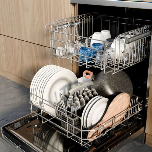 La función Secado+ (+DRY) te permite ajustar el ciclo para un mejor secado, ideal incluso para elementos plásticos que a menudo retienen humedad. La cesta superior es regulable en altura, lo que brinda máxima flexibilidad para colocar ollas, sartenes y bandejas de gran tamaño en el canasto inferior. Cuenta con 2 cestos separadores y una cesta dedicada para cubiertos.