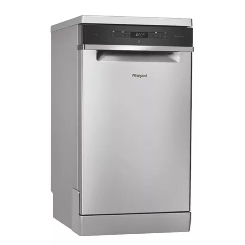 Características generales: Marca: Whirlpool Modelo: WSFO3T2 Color: Acero inoxidable Voltaje: 220V - 240V Modelo detallado: WSFO3T223PXAG Lavado: Cantidad de programas de lavado: 7 Con ciclo eco: Sí Temperaturas del agua: 45 °C, 50 °C, 60 °C, 65 °C Programas de lavado: Eco, 6th sense, Intensivo, Cristales, Rápido 30', Pre-lavado, Auto limpieza Características adicionales: Power clean pro, Alarma de fin de lavado Dimensiones: Ancho x Profundidad x Altura: 45 cm x 59 cm x 85 cm Pantalla: Con pantalla táctil: Sí Tipo de pantalla: LCD Especificaciones: Potencia: 1900 W Capacidad total de cubiertos: 10 Con tecnología inverter: Sí Nivel de ruido: 43 dB Eficiencia energética: A++ Es programable: Sí Características de la estructura: Tipo de montaje: De pie Con recipientes para cubiertos: Sí Con bandejas regulables: Sí Cantidad de bandejas: 2 Cantidad de aspersores: 2 Características generales: Marca: Whirlpool Modelo: WSFO3T2 Color: Acero inoxidable Voltaje: 220V - 240V Modelo detallado: WSFO3T223PXAG Lavado: Cantidad de programas de lavado: 7 Con ciclo eco: Sí Temperaturas del agua: 45 °C, 50 °C, 60 °C, 65 °C Programas de lavado: Eco, 6th sense, Intensivo, Cristales, Rápido 30', Pre-lavado, Auto limpieza Características adicionales: Power clean pro, Alarma de fin de lavado Dimensiones: Ancho x Profundidad x Altura: 45 cm x 59 cm x 85 cm Pantalla: Con pantalla táctil: Sí Tipo de pantalla: LCD Especificaciones: Potencia: 1900 W Capacidad total de cubiertos: 10 Con tecnología inverter: Sí Nivel de ruido: 43 dB Eficiencia energética: A++ Es programable: Sí Características de la estructura: Tipo de montaje: De pie Con recipientes para cubiertos: Sí Con bandejas regulables: Sí Cantidad de bandejas: 2 Cantidad de aspersores: 2