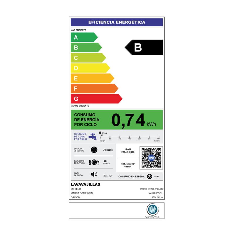 Marca: Whirlpool - Modelo: WSFO3T2X - Color: Inox - Capacidad: 10 cubiertos - Dimensiones (cm) Alto 85 x Ancho 45 x Profundidad 59 - Dimensiones con embalaje (cm) Alto 89 x Ancho 50 x Profundidad 67,5 - Peso: 39,5 kg - Peso con embalaje: 41,5 kg - Garantía de Fábrica: 12 meses - Origen: Polonia NO REALIZAMOS FACTURA A