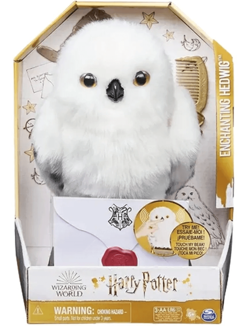 Reviví la magia del mundo de Harry Potter con esta lechuza interactiva que emite sonidos al presionarla. Suave, esponjosa y con detalles fieles al personaje, es perfecta para fans, coleccionistas y niños que disfrutan de peluches con funciones especiales.