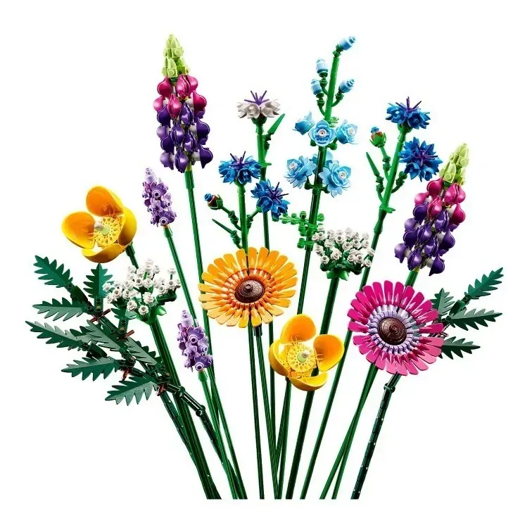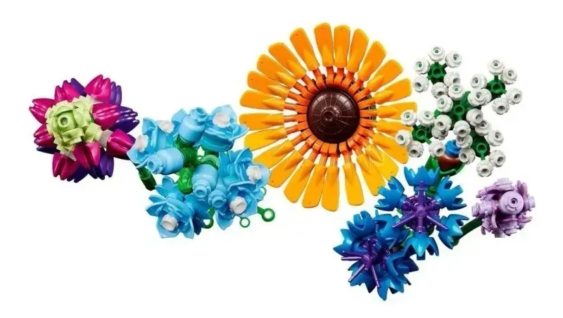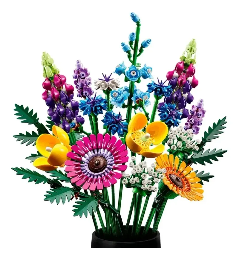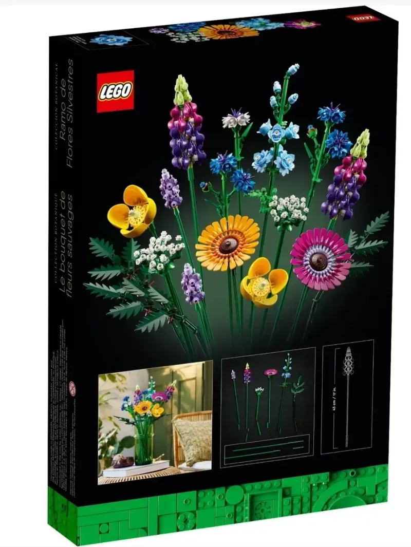 Creado íntegramente con elaboradas piezas LEGO, el Ramo de Flores Silvestres está formado por 8 variedades de flores silvestres en tallos ajustables. Los amantes de las flores podrán pasar horas construyendo e identificando los brotes inspirados en acianos, lavanda, amapolas amarillas, perifollo verde, helechos hoja de cuero, gerberas, espuelas de caballero y lupinos. Estas flores LEGO, colocadas en un jarrón, iluminarán cualquier espacio.