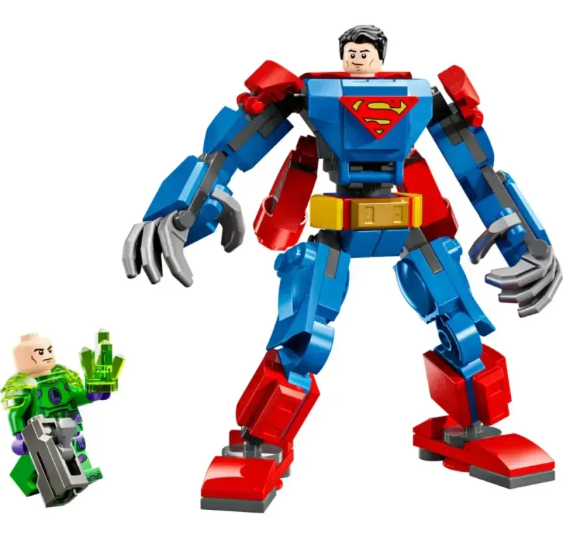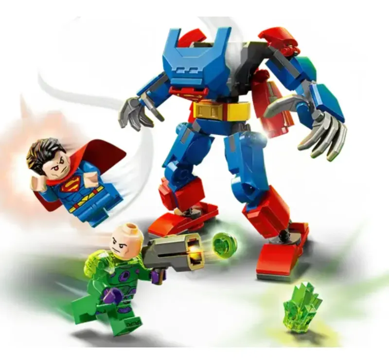 El torso se abre y contiene una cabina con espacio para sentar a la minifigura de Superman. La armadura robótica lleva 2 propulsores ajustables en la espalda para “volar”.