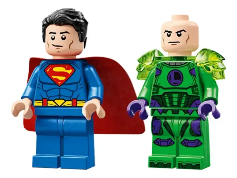 Este juego LEGO DC basado en Superman incluye 2 minifiguras: Superman, con una capa de tela y una cabeza reversible con expresiones alternativas, y Lex Luthor, con un cañón que dispara y un cristal de Kriptonita.