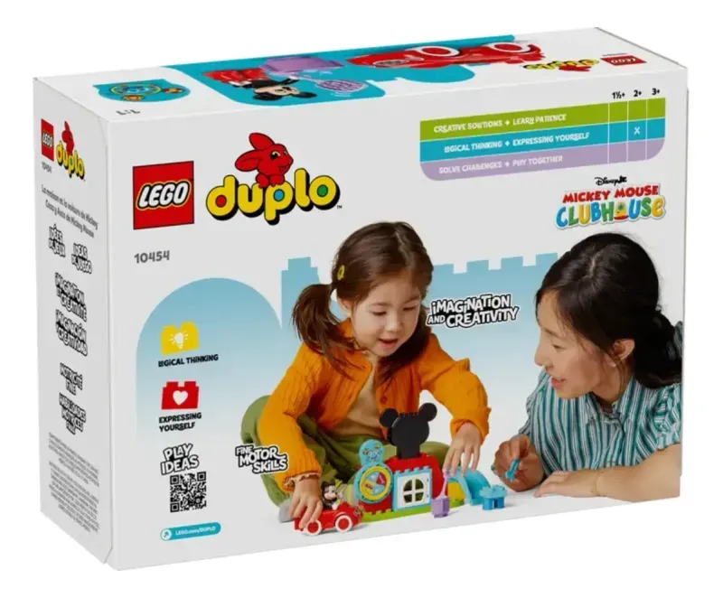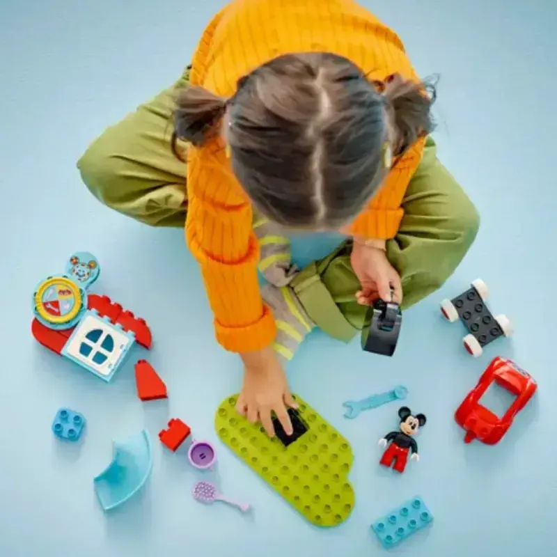 2 conocidos personajes: Una figura LEGO® DUPLO® de Mickey Mouse y un elemento que representa a Toodles, además de una versión de juguete construible del coche rojo de Mickey Mouse que aparece en la serie de Disney Junior La casa de Mickey Mouse