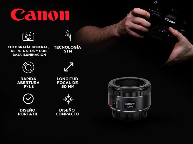 El lente Canon EF 50mm f/1.8 STM es un lente compacto y versátil que ofrece resultados sorprendentes para fotógrafos de todos los niveles. Su apertura amplia de f/1.8 permite capturar imágenes luminosas y nítidas incluso en situaciones de poca luz, al tiempo que crea un hermoso efecto bokeh para resaltar al sujeto en fondos desenfocados. Es ideal para quienes desean capturar detalles en fotografía de retrato, en movimiento o en ambientes urbanos.