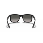 Inspiradas en el icónico modelo Wayfarer, las **Ray-Ban Justin RB4165L** presentan una versión más audaz y contemporánea, ideal para quienes buscan un look moderno sin renunciar a la calidad óptica. Su acabado en goma negra mate y lentes gris degradado aportan una estética urbana y versátil, perfecta para uso diario.
