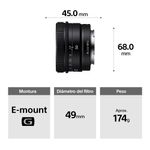 Montura tipo E con formato Full Frame, Lente G prime estándar, Alta calidad de imagen y lente de excelente diseño con un funcionamiento intuitivo